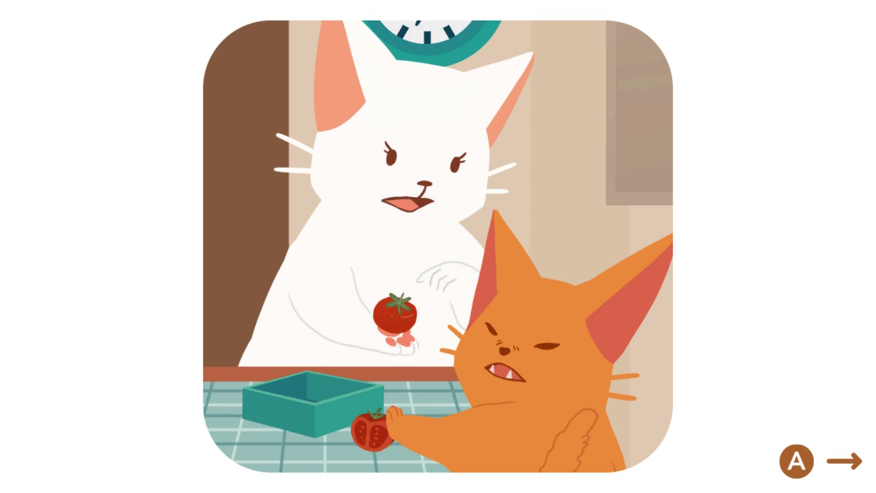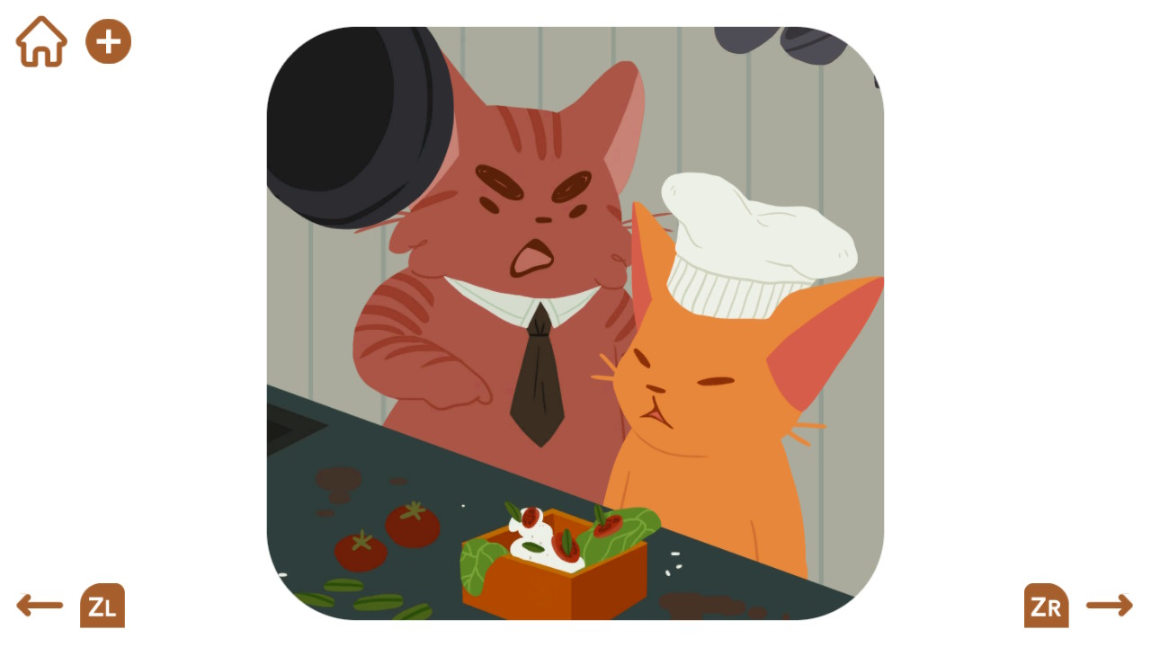 As I’ve said before, Inbento is such a cute game. The illustrations you get once you complete chapters are so cute and perfectly show what’s going on without needing any text. Just sounds of the cats meow-speaking, food being chopped, or boiling water. These illustrations will even slightly move if you move or tilt your Switch. The food blocks are also cute and I love that you’ll be working with various different kinds of food to show how tastes change and just giving you something else to look at. The music accompanying the puzzles was also calming and never got annoying to listen to.