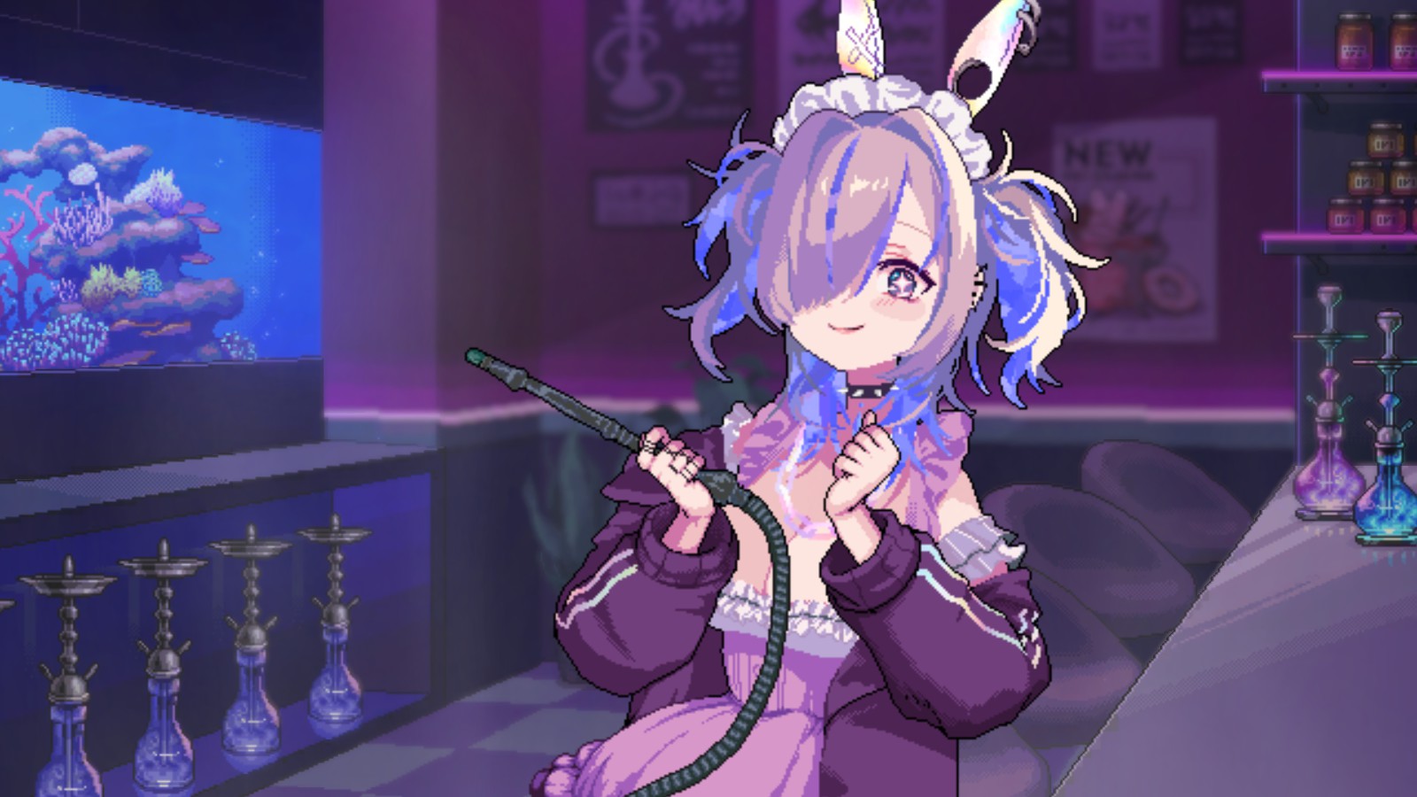 Ever since I played Va-11 Hall-A and absolutely loved it I’ve been chasing for a game that’s similar. While no similar games have quite reached it, they have gotten close. When I saw Hookah Haze, I immediately wanted to play it as it did seem like a game similar to Va-11 Hall-A and the art was pretty cute! I was especially excited when I saw the announcement that Hookah Haze was going to release a demo for Next Fest and while I did put off playing the VN demos way too late, I made sure to prioritize this one. So how was it?