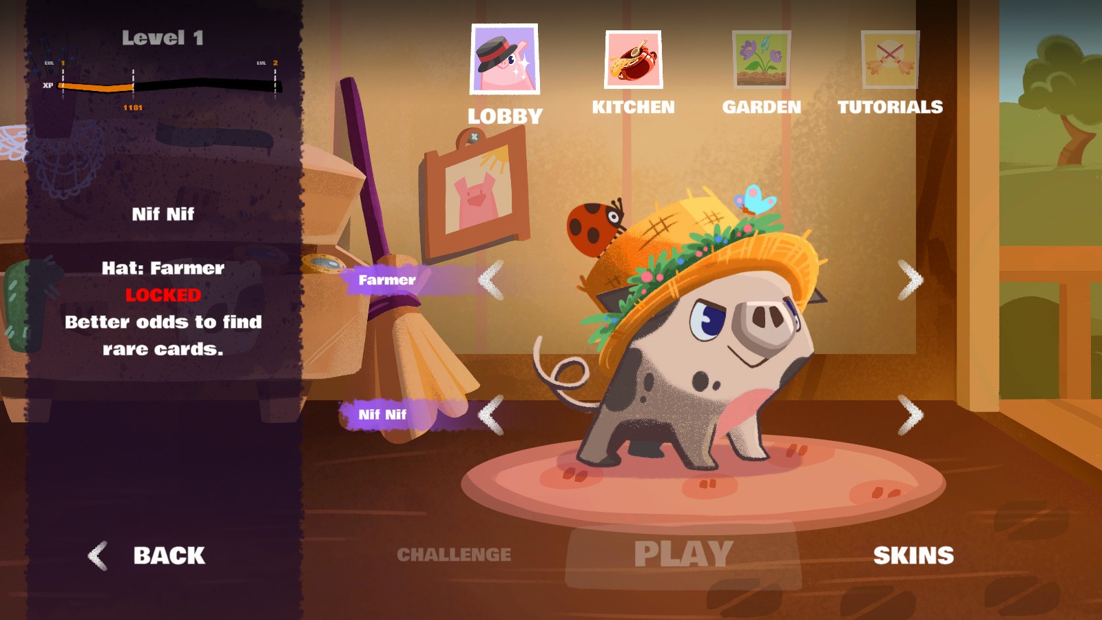 Before each run, it looks like there will be various different equipment you can equip to gain an effect, like healing after every battle. The demo does give access to two hats and while I’m not entirely sure if there will be clothing for Nif Nif’s body, you can also change how he looks like as there are three different skins you can switch between in the demo. You can also cook a soup if you want, which is a consumable you can use so you can power up Nif Nif. These only last until the end of battle (increase Power) or whenever it’s used up (Apply 15 Protect). You’ll also be able to pick a Special Card. There’s also going to be a garden in the full game based on the tabs. I’m not too sure what that’ll be, considering you can make soup without having ingredients, but maybe it’ll be a bestiary?