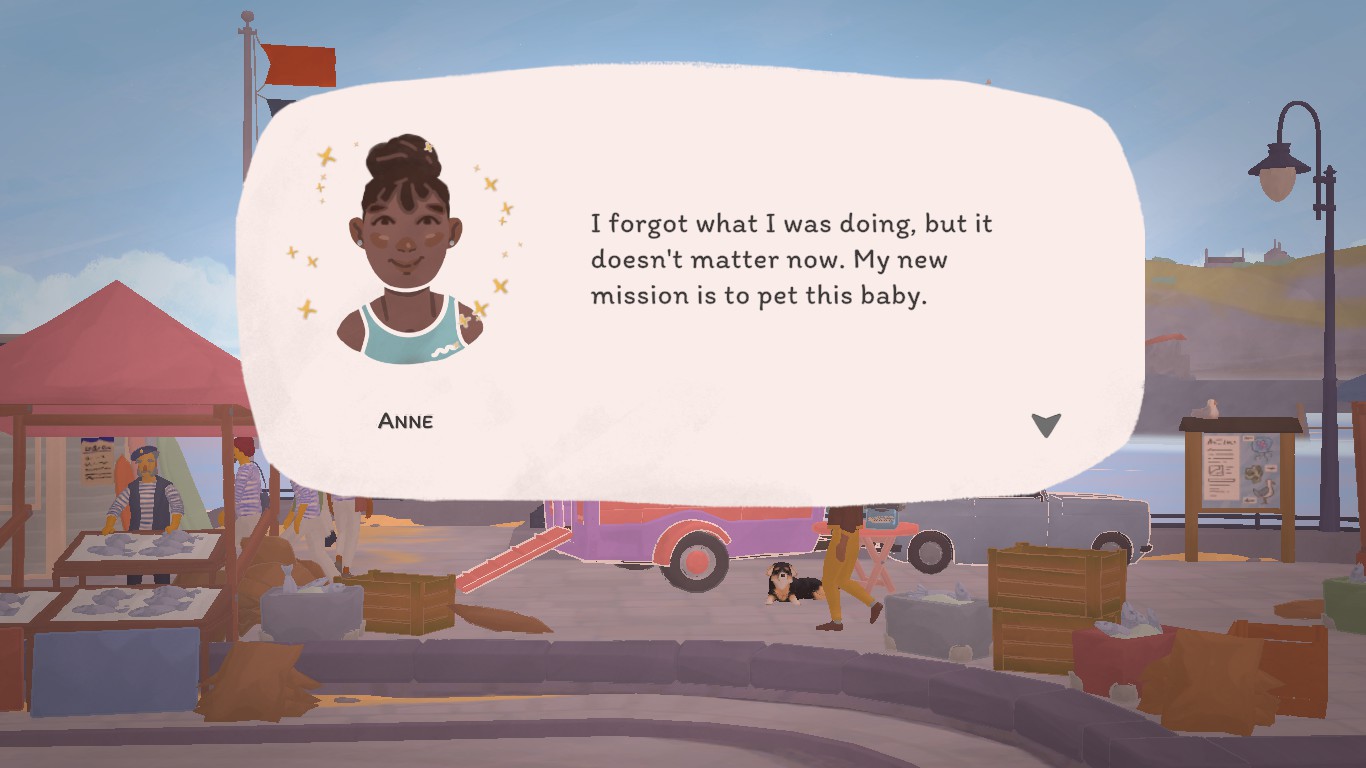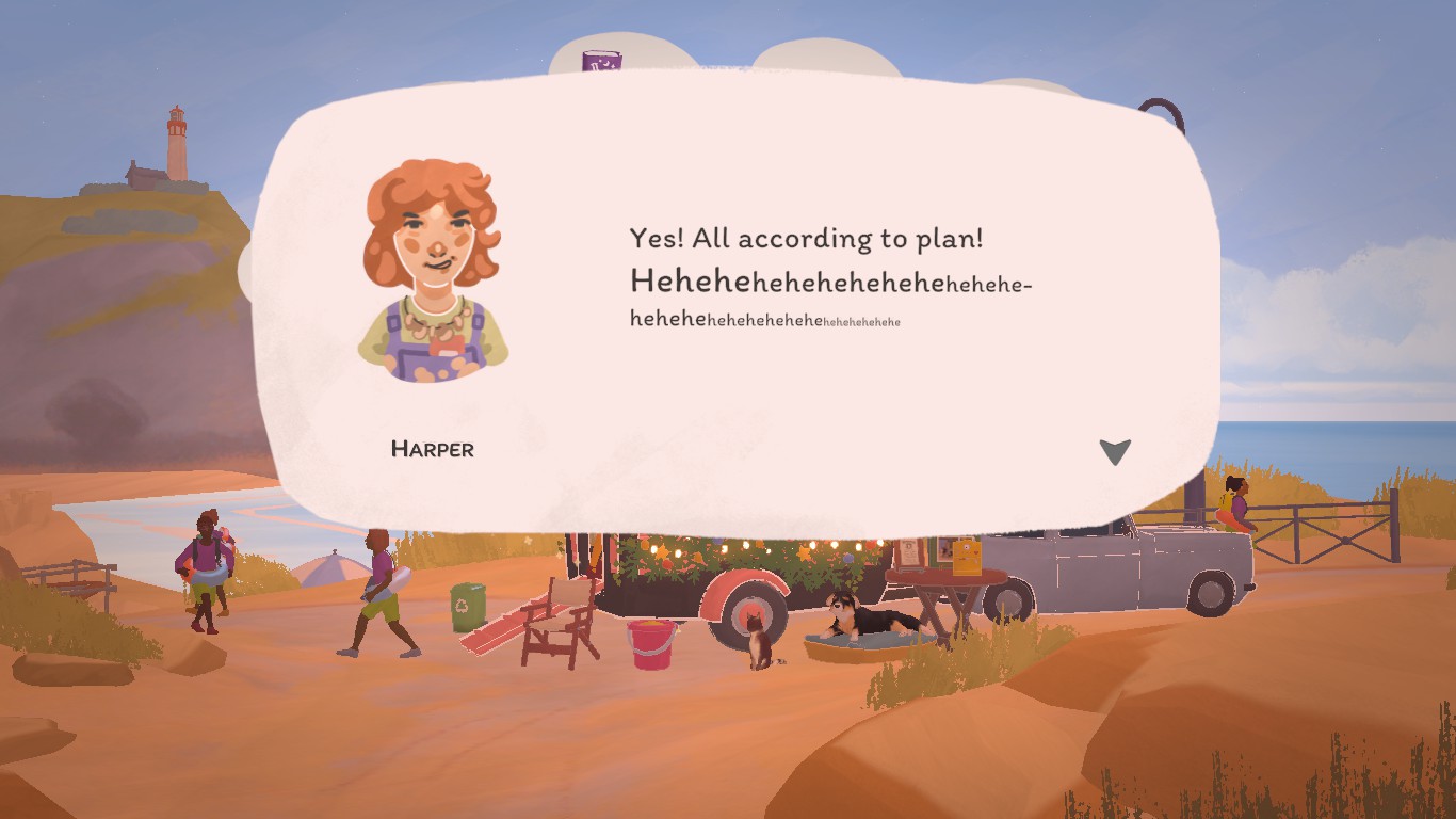 In Tiny Bookshop, you play as yourself. For whatever reason, you decided one day to pack everything up and leave everything behind to live a quiet life by the sea. It doesn’t look like you have much to your name other than your car and your trusty trailer which you outfitted to be a bookstore. A…tiny bookshop if you will (heh). You end up at a seaside town known as Bookstonbury to pursue this venture, this dream, of yours and man, you could not have picked a better place. Not just because the town has “book” in it, but because of the people.