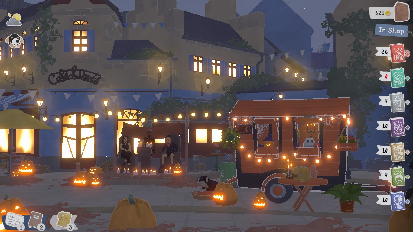 I absolutely loved the gameplay here. The gameplay loop here is simple, but fun. There are just some games that I didn’t know I wanted until I see it and a game where you run a mobile bookshop was one of them. It also was pretty satisfying watching customers come in, buying books, successfully recommending a book, seeing how much I successfully earned, and slowly watch as I become an absolute book selling beast. I also loved being able to see the stack of books your customers bought and then being like “oh my gosh this guy is buying so many books” and then remember I can’t judge cause that…that was me at one point haha. Oh and looking at a huge stack of books a customer is buying and going “that must be a record” even though half the time I’m not able to count how many books are in the stack before they place them in their bag. It also definitely helps that you aren’t penalized for not successfully recommending a book, which would have turned something that is just annoying for a couple seconds to a really annoying mechanic since you can easily not have a book someone is asking for. The coziness really makes it easy to not sweat that kind of stuff and it really helps the enjoyment here.