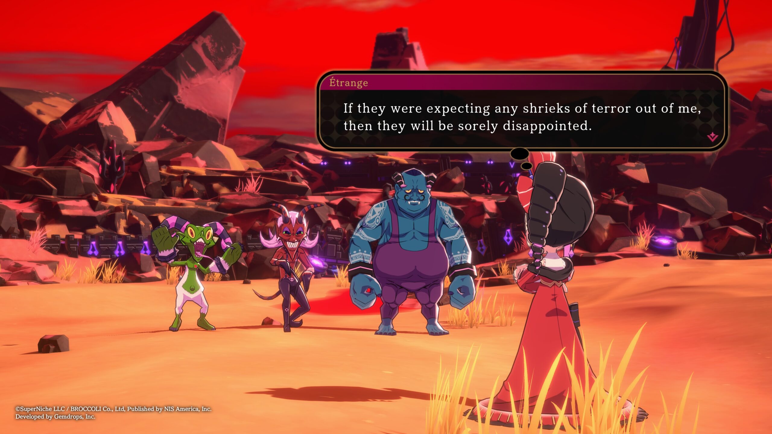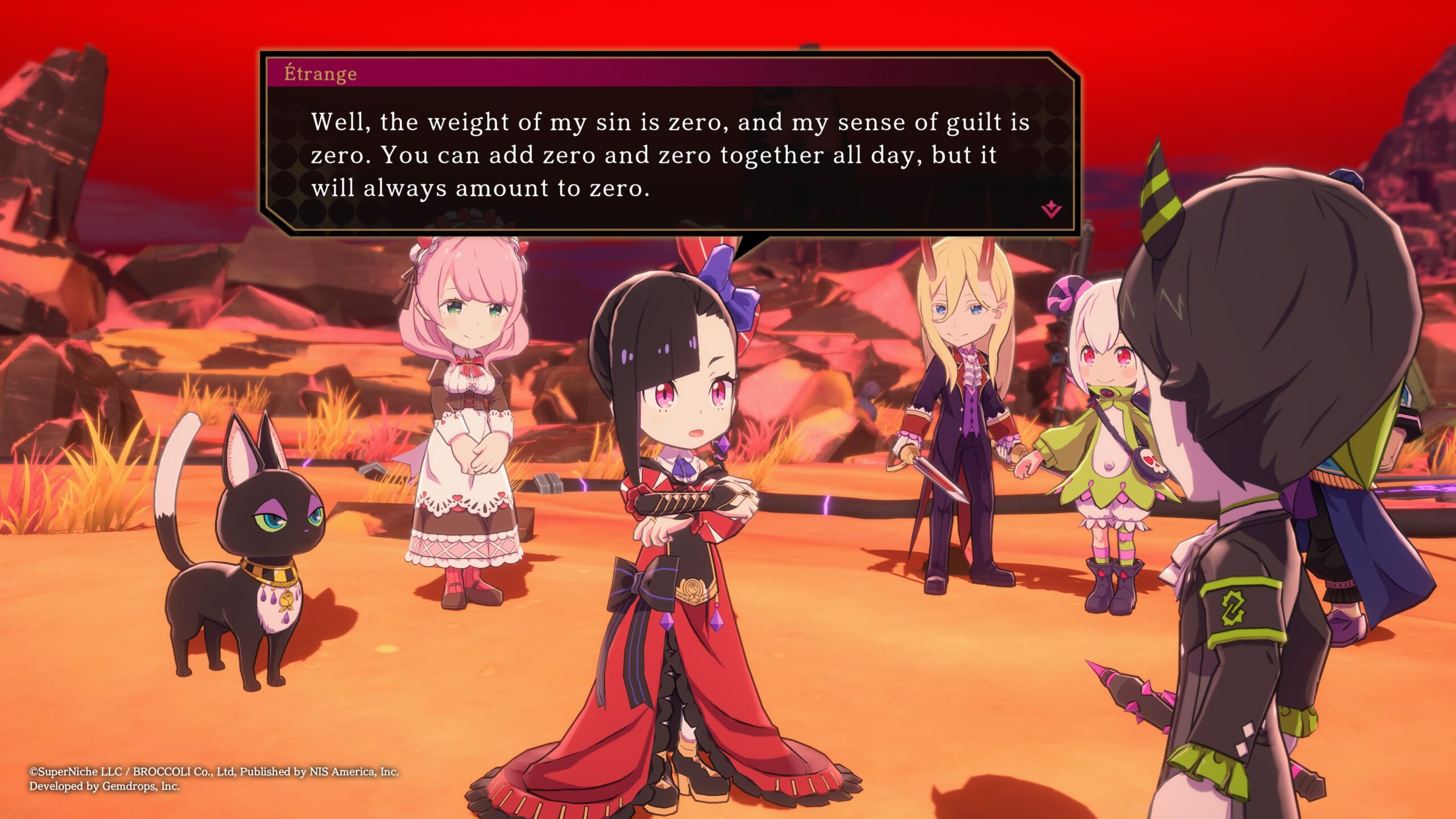 The game does throw you into things after the fact and doesn’t explain things to you, but the game honestly handles this exceptionally well. I have a couple reasons why it works so well here. For one, the game isn’t written in a way that makes you feel like you should already know it. Whether it’s something related to the game’s lore or a character’s backstory, it is eventually touched upon and it is written in a way that feels natural for the characters to say while also giving you the necessary information. Plus, some aspects you can assume before it gets revealed. Another is that I do think the game also puts it as a mystery in a way. Like finding out why Etrange was executed or why she landed in Hell. I also do think the lighthearted, humorous way the game is written also helps as it is very easy to just go along with it (and it’s especially easier if you read stories in the same story genre before as you know what to expect). It’s even better that it’s not in the “shut your brain off” way but in a way where you do want to find out, you’re engaged, and everything does line up and make sense. Lastly, it very much is in character for Etrange. She is someone that doesn’t look to her past, so it feels very on brand that the game is more focused on what’s happening now and planning for the future.