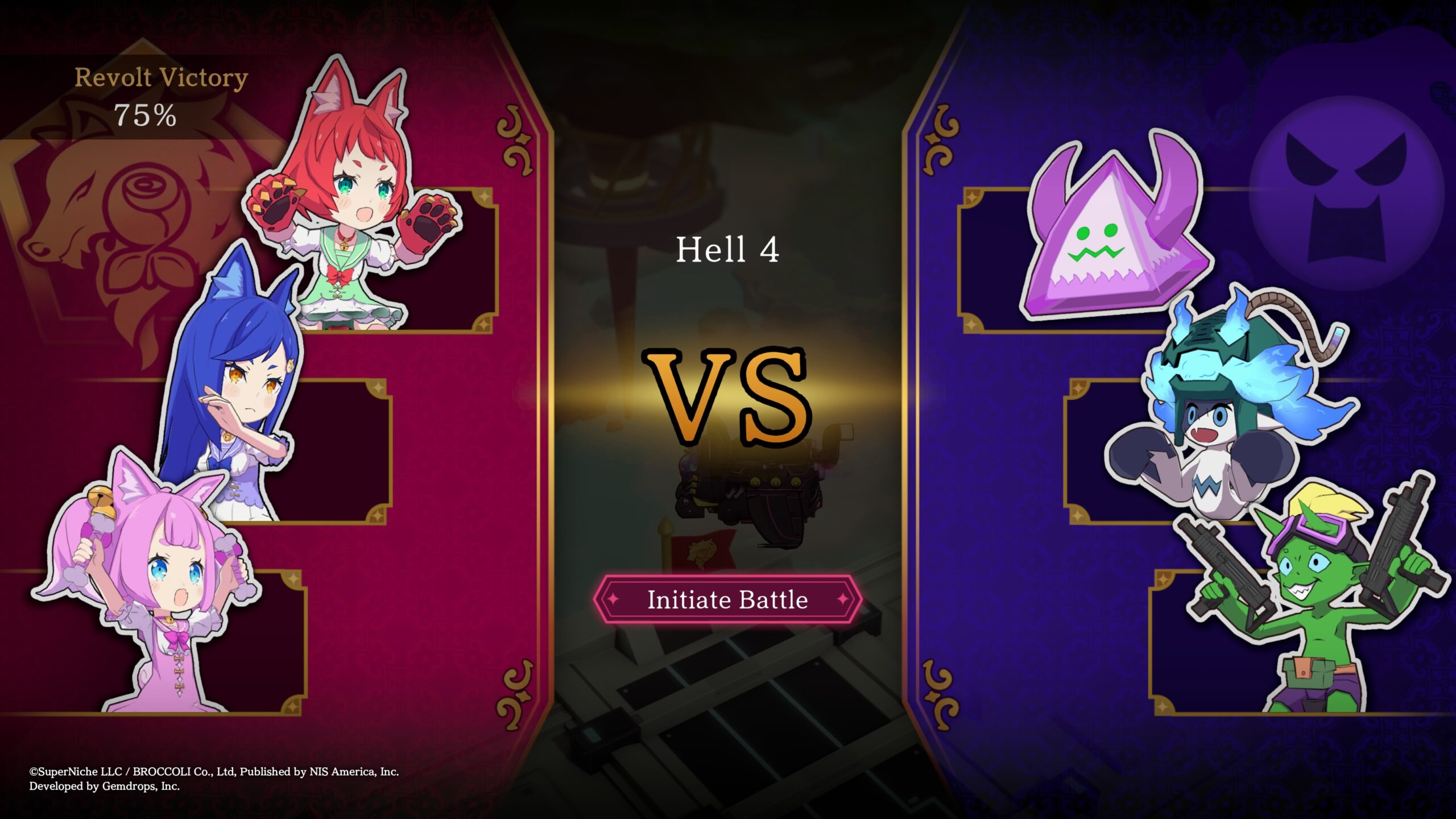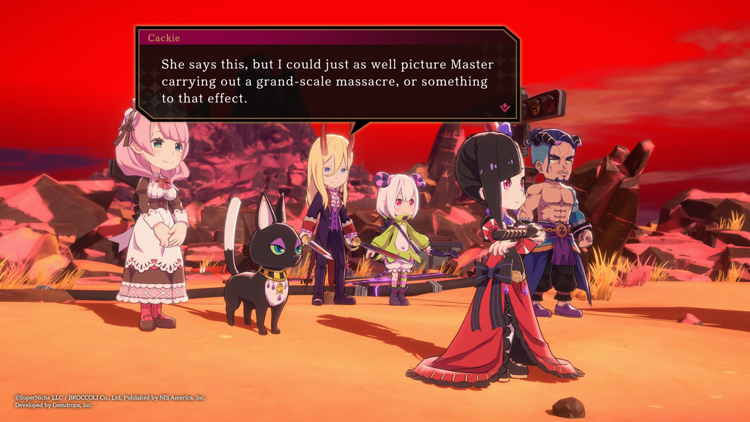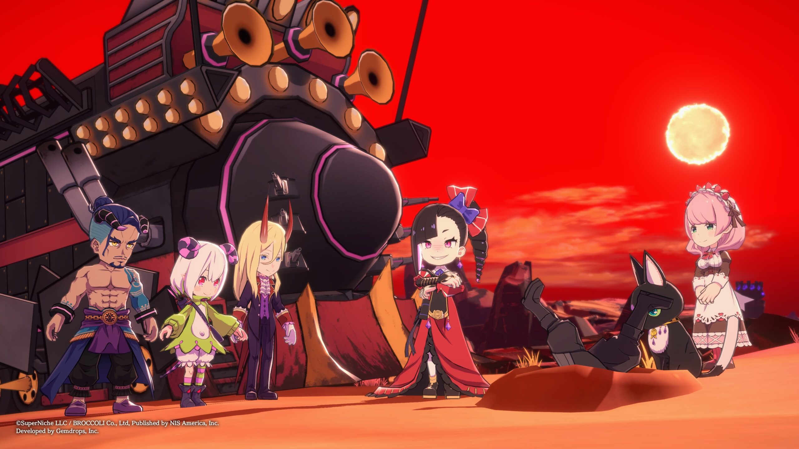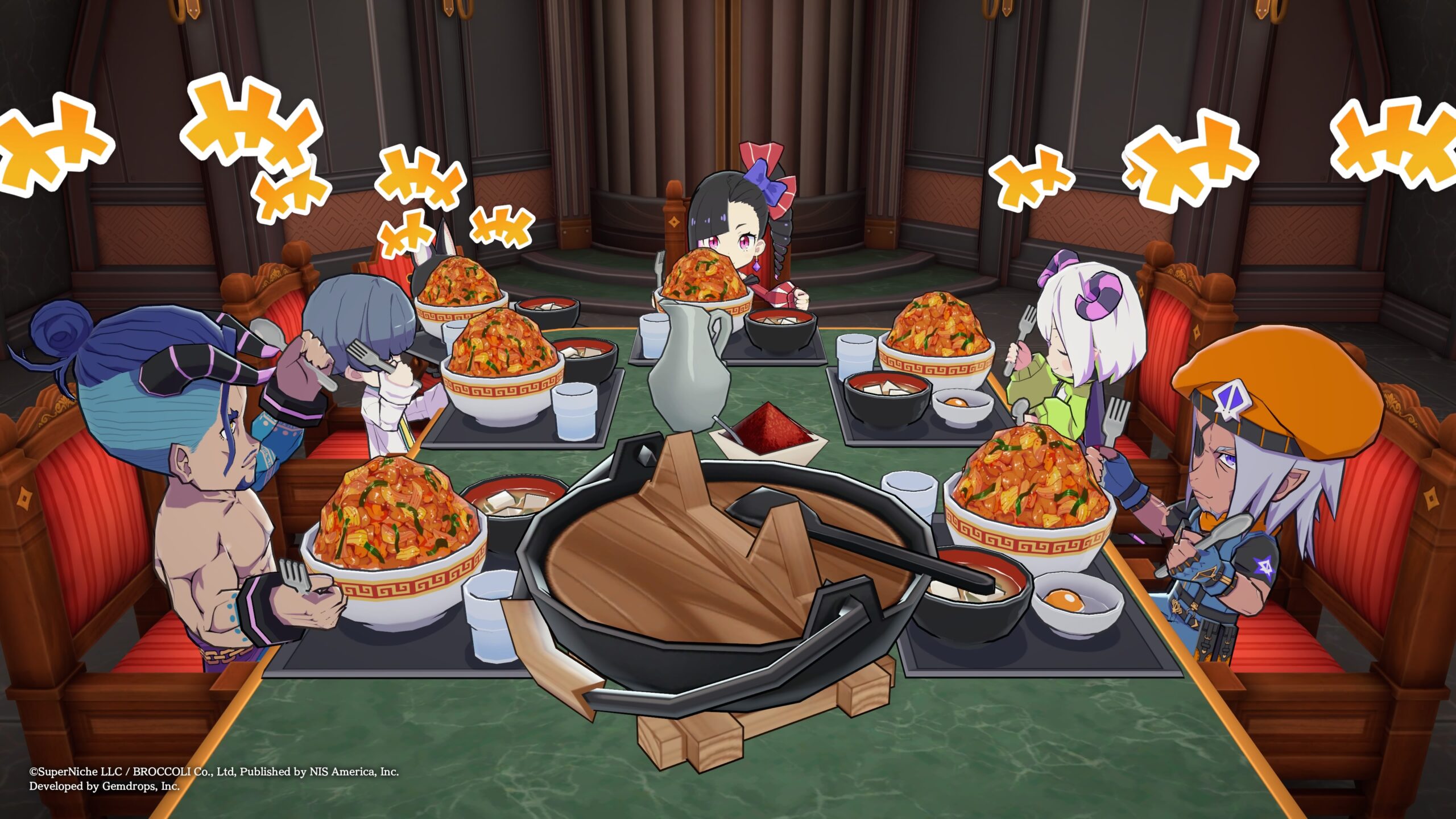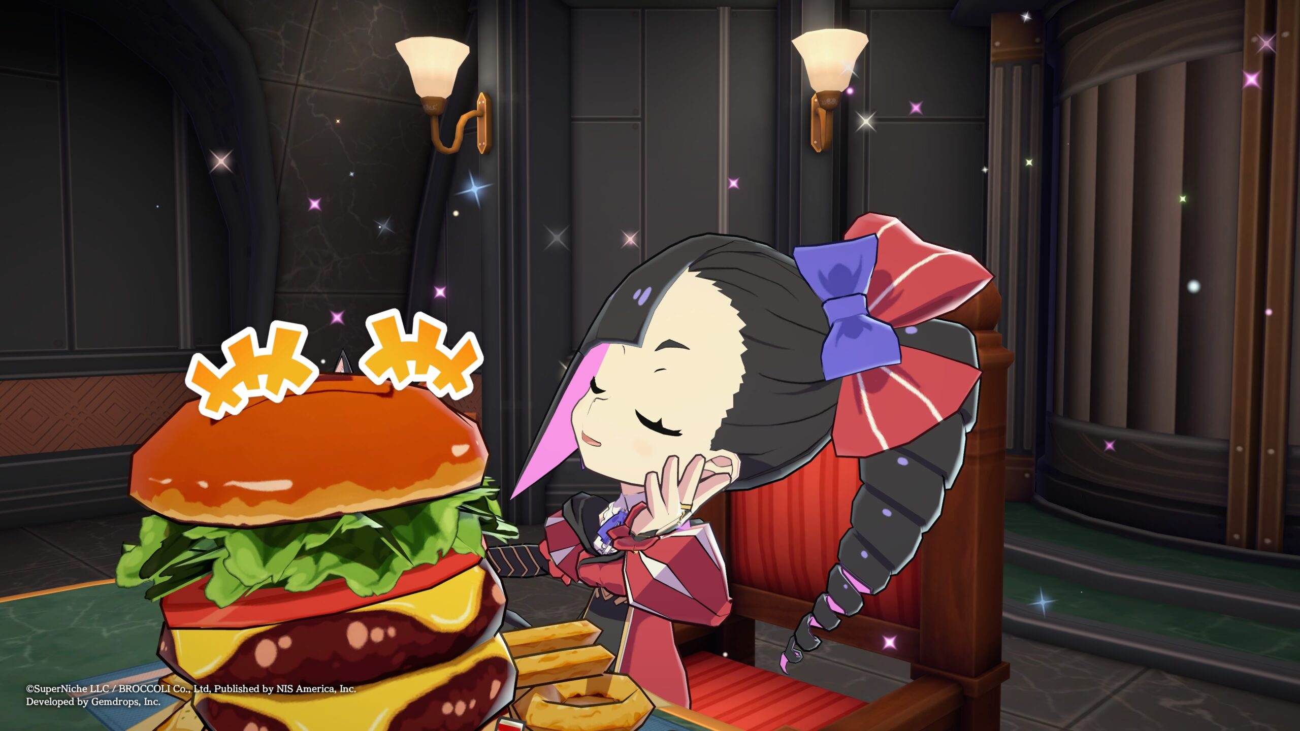 And on that note, the visuals here were so well done and cute. The designs for the different locations and the battle stages are simple, but well done. They’re simple enough where you can drive or walk through them, get the gist of the location’s vibe and how it must look to those in-universe, easy to navigate, and easy to split them up into several areas; but they just have enough detail to them where you can tell what the areas are most likely used for (like there’s one area in Hell that is definitely a vacation spot for demons), there are some good little hidden details, and each stage does feel different thanks to the subtle differences made based on how far you’re in, where you’re at, and what the goal is. I wouldn’t be surprised if there weren’t duplicate stages cause it certainly felt that way (and even if there were a duplicate stage or two, I still call it a win that all the stages felt different). I also loved the 3D models for everything. All the items look really good and in some cases really cute. I loved the enemy designs and I love how while there are some enemies that appear in all the locations, they’re not color palette swaps but variations of that enemy. Making it believable why they’re appearing in the location. Plus, each location does have some enemies unique to their area. And finally, the character models for everyone are so cute and well animated. I’d say the art style for these models are like the perfect mix of chibi and a more realistic proportioned anime style that really works here. It not only lets their 3D models be able to feature the majority of their details without getting lost or feeling too much, but also lets them be pretty expressive in their animations both in battle and in cutscenes. Which is definitely important considering that this game has some musical sequences (which are also animated wonderfully).