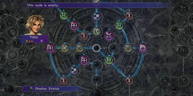 Of course, each battle will grant your teammates experience, or AP (Ability Points). However, only the teammates that did something in the battle will get AP (ah when EXP sharing wasn’t a thing). It can be annoying when you’re trying to equally level everyone up and having to switch everyone in and out for each battle. Leveling up in FFX isn’t like other JRPGs. It’s a really unique way of leveling up in a way that you’re not necessarily leveling up. Instead of getting stat increases each level up, you instead move on a Sphere Grid. Everyone has their own section on the (Standard) Sphere Grid and with each Sphere Level a character has, that character can move one node. If they’re on a node that has, or is right by, a node that is a stat or ability node, you can then use a sphere that corresponds with the node to activate it. Once it activates, that character then gains whatever stat or ability it had. You can’t run amok willy nilly though, as some nodes are locked and you need to have a key sphere to clear it. Once I got used to it, it turned out to be really interesting and I did end up liking it. Sure you can get into points where you can’t activate nodes, or sticky situations when you forget to take a little sphere grid stroll, but it does offer a lot of customization. Especially when you finish a character’s grid section and get ready to go into another character’s section.